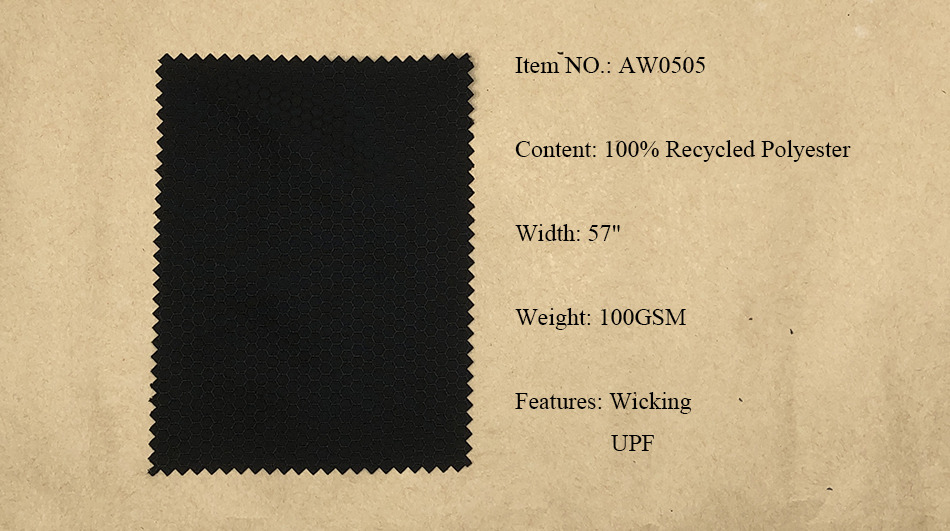 Recycled Polyester Fabrics: Pongee, Ribstop, Twill, Cationic, Serge, Mesh, Trucker Mesh, Dobby, Pique, Sheeting, Jersey, Interlock.